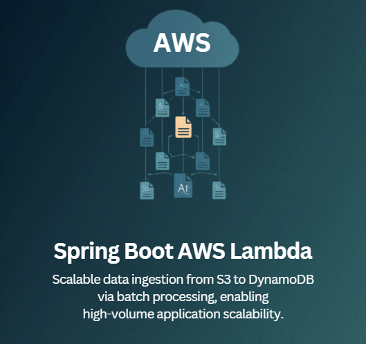 Developed a Spring Boot-based AWS Lambda application triggered by S3 file upload events. Implemented CSV file processing to read uploaded data and convert records into application objects. Stored processed records in DynamoDB using batch operations for efficient large-volume data handling.