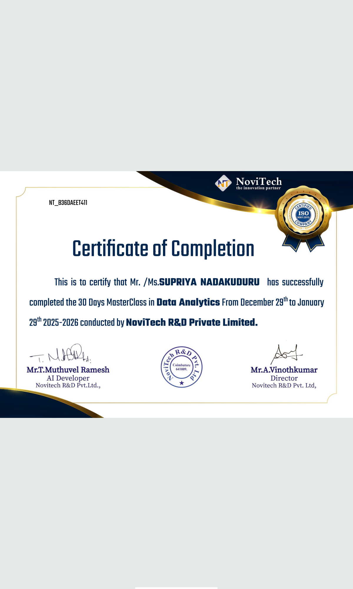 Data analytics is the process of collecting, cleaning, and analyzing data to discover useful insights and support better decision-making. It helps in understanding patterns, trends, and user behavior from raw data. In data analytics, tools and techniques like Excel, SQL, Python, and visualization dashboards are used to: Identify trends and patterns Improve business or project decisions Solve real-world problems using data Present insights in a simple and visual way It plays an important role in turning raw information into meaningful and actionable insights.